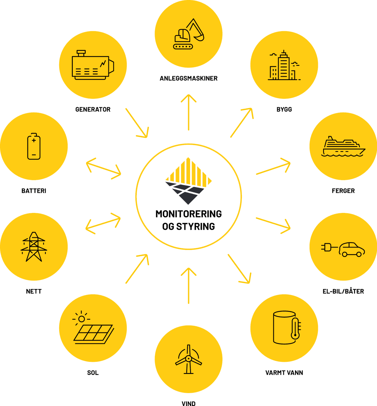 All our energy systems come equipped with a control system engineered by our partner. Kverneland Energi International (KVE). This can be anything from simple monitoring of a solar power plant to more advanced systems that handle various energy sources within one system.